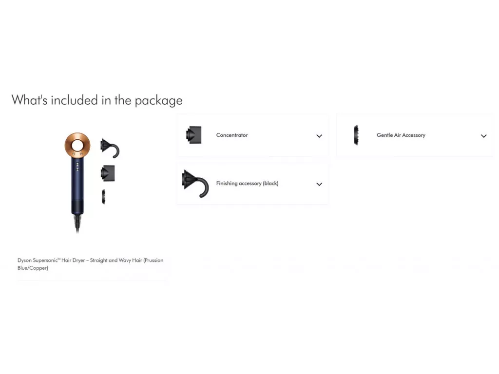 Мощный двигатель Dyson V9 с цифровым управлением со скоростью до 110 000 об/мин | 4 уровня нагрева | 3 точные настройки скорости | Магнитные насадки: Насадка для непослушных волос, Насадка-концентратор, Насадка для бережного высушивания волос | Prussian Blue/Rich Copper | Европейская вилка