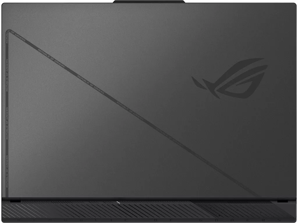 Дизайн ноутбука основан на повсеместном использовании неброских, но запоминающихся деталей. Точечный узор на крышке дисплея гармонично сочетается со «штрихованными» вентиляционными отверстиями под основанием корпуса. Прорезиненная вставка надежно удерживает ноутбук на месте во время игры, а при переноске не дает ему выскользнуть из пальцев. О принадлежности устройства к игровой серии ROG напоминают разбросанные по корпусу текстовые элементы.