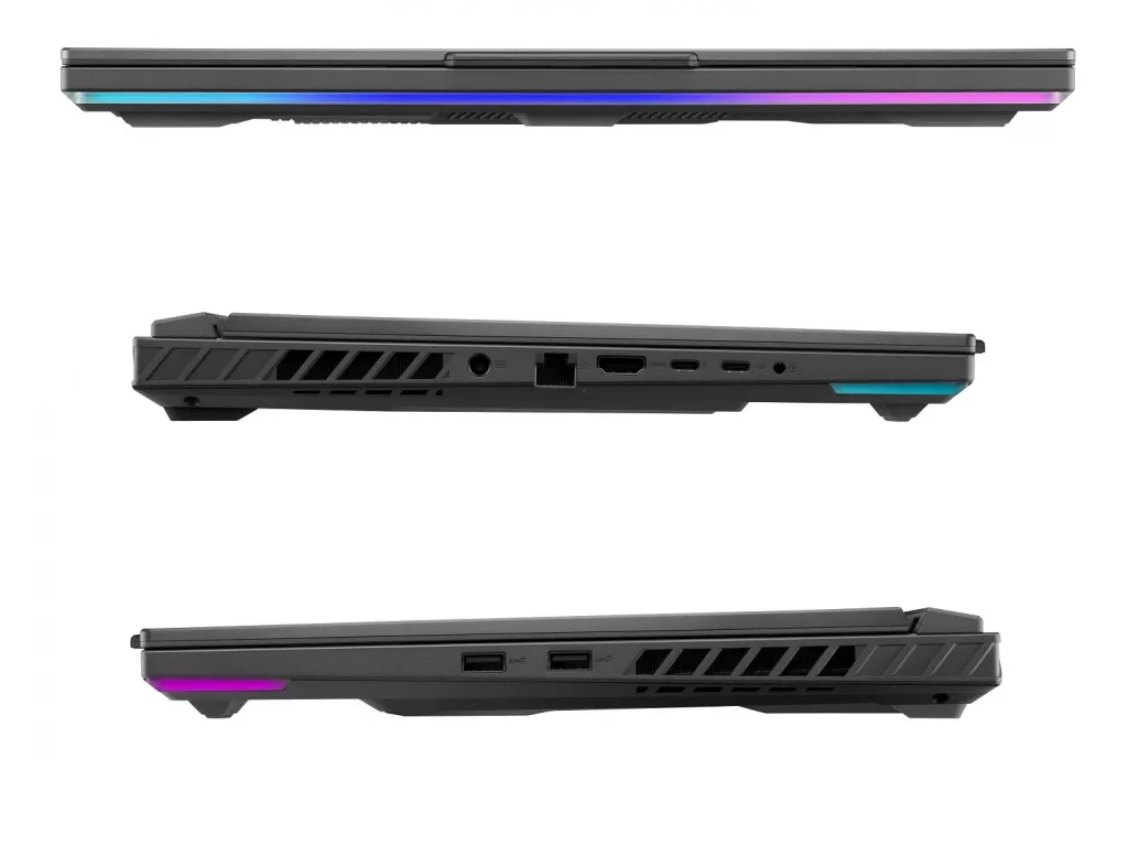 Для отвода тепла от горячих компонентов используются радиаторы, состоящие из медных ребер толщиной всего 0,1 мм. Благодаря этому число ребер увеличено до 374, при этом общая площадь теплорассеивания составляет 174183 мм² – на 71,26% больше, чем у модели 2022-го года ROG Strix G15. Сопротивление воздушному потоку стало существенно ниже по сравнению с типичными радиаторами, у которых ребра толще. Особо стоит отметить полноразмерный радиатор, который занимает всю заднюю часть корпуса ноутбука – он в два раза больше по сравнению с обычными.