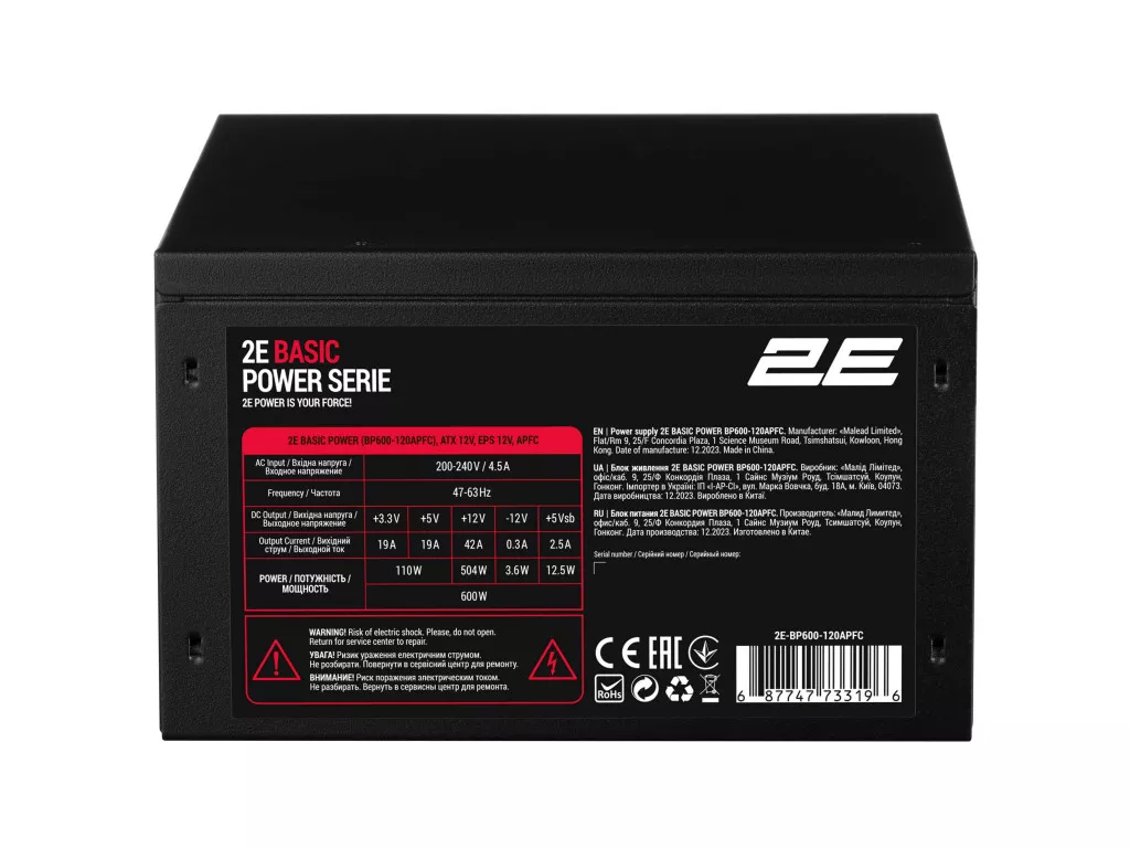 Потужність 600 W | Функція PFC Активна | Вентилятор 120 мм | SATA x4 | Роз'єми дод. живлення для відеокарт 2х 6+2 pin | Форм-фактор БП ATX