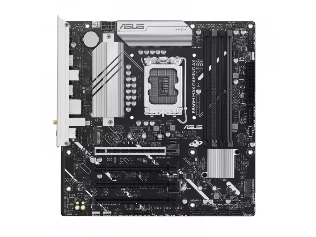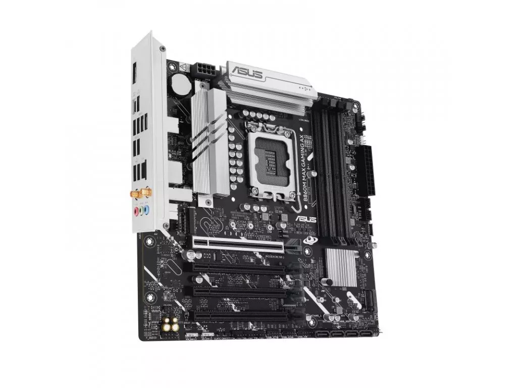 Socket 1851 | Чіпсет Intel B860 | Пам'ять 4 слоти DDR5 8666 MHz, max 256 Gb | Роз'єм M.2 x 3 | Графічний інтерфейс 1x PCI Express 5.0 x16, 3x PCI Express 4.0 x16 (x4) | Вбудоване відео | Виходи для монітора DisplayPort, USB Type-C | Підтримка RAID 0/1/5/10 | Wi-Fi | Форм-фактор Micro-ATX