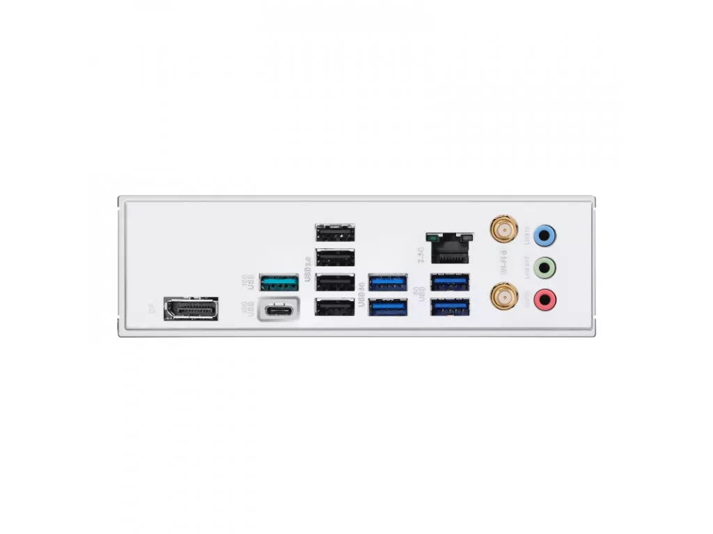 | Задня панель вводу/виводу | 1 x USB 20Gbps port (1 x USB Type-C® with DP Alt mode) 1 x USB 10Gbps port (1 x Type-A) 4 x USB 5Gbps ports (2 x Type-A) 4 x USB 2.0 ports (4 x Type-A ) 1 x DisplayPort 1 x Wi-Fi module 1 x Realtek 2.5Gb Ethernet port 3 x Audio jacks |